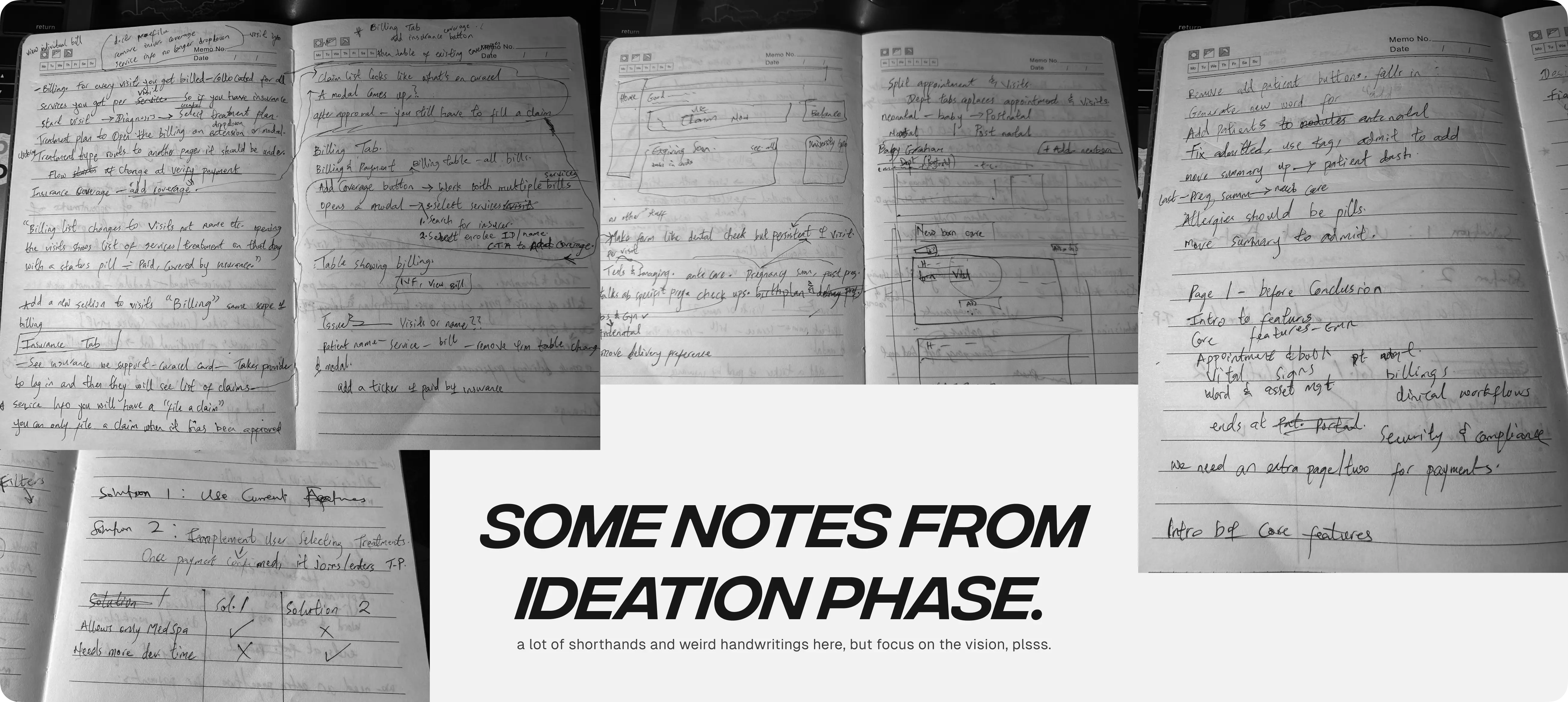- Shadowing & Feedback: Shadowed users during real patient encounters and daily admin work with our EMR, uncovering and noting moments of friction and unnecessary complexity.