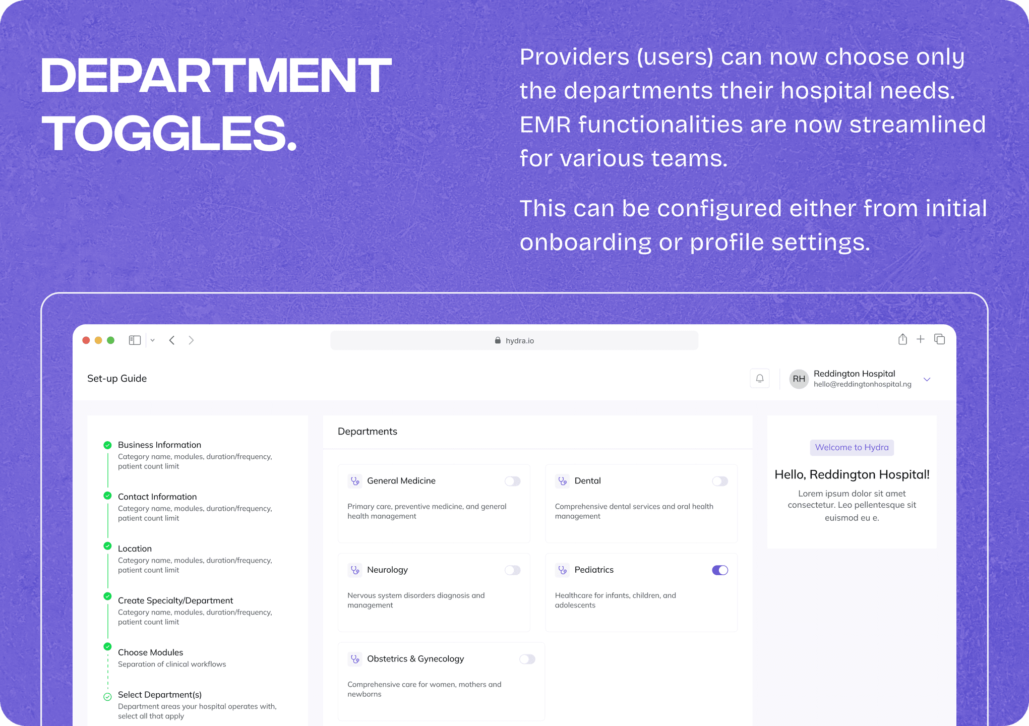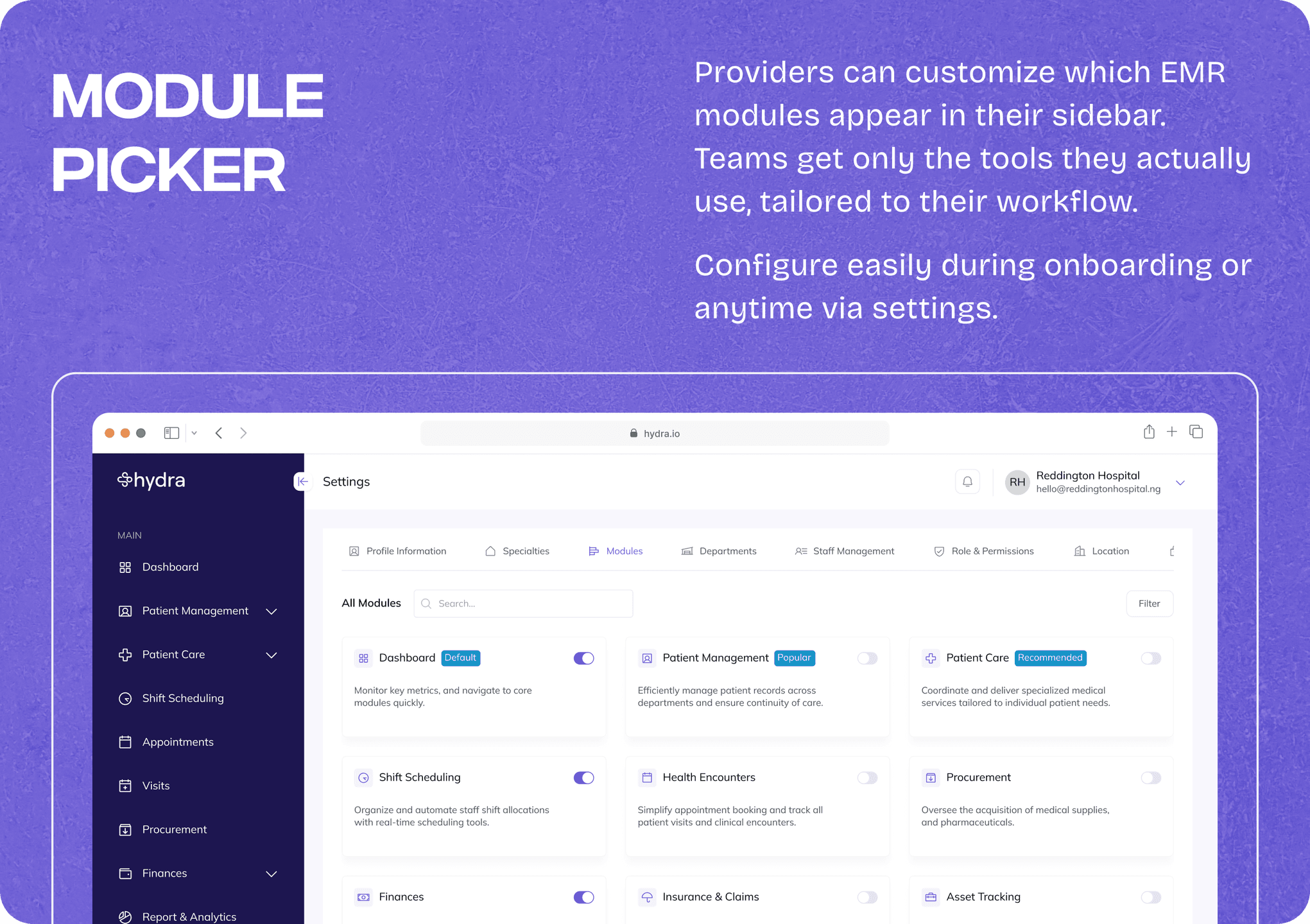 When Hydra first launched, the goal was simple: take the admin chaos out of healthcare and empower medical teams to focus on what they do best—caring for patients. ut as our user base grew, so did the diversity of practitioners relying on Hydra. A system built for generalists was suddenly being asked to serve surgeons, dentists, OB/GYNs, lab techs, and everyone in between. The cracks started showing when workflows overlapped and providers (users) routinely encountered screens, forms, and data fields that simply didn’t apply to their daily practice. It’s like giving every chef in the kitchen the same knife and hoping for a Michelin star.